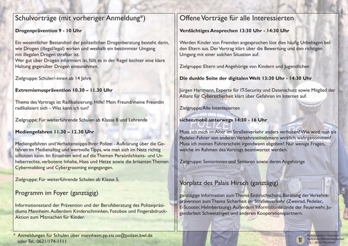 POL-MA: Schwetzingen: Besuchen Sie uns am Tag der Prävention! Vielfältige Informationsthemen, Vorträge und Mitmachprogramme für Kinder