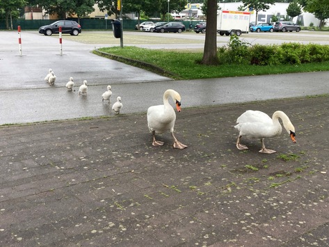 POL-MA: Hemsbach/ Rhein-Neckar-Kreis: Polizei geleitet Schwanenfamilie sicher durch den Straßenverkehr