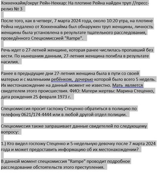 Hockenheim (ots) – Nachdem am Donnerstag, den 07.03.2024, gegen 10:20 Uhr ein weiblicher Leichnam am Rheindamm bei Hockenheim aufgefunden wurde, konnte die Identität der Frau durch intensive Ermittlungen der Sonderkommission „Rampe“ geklärt … Lesen Sie hier weiter…